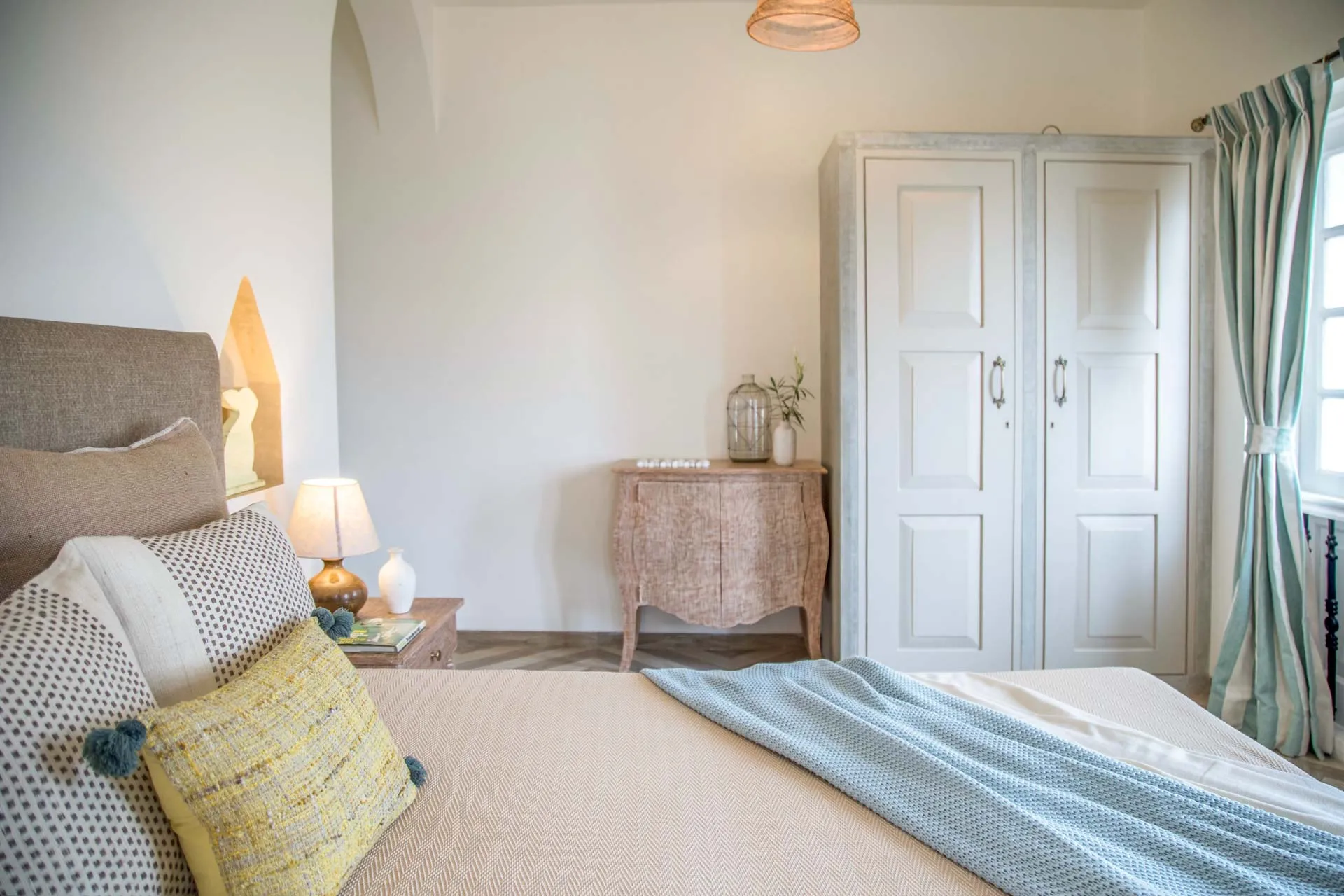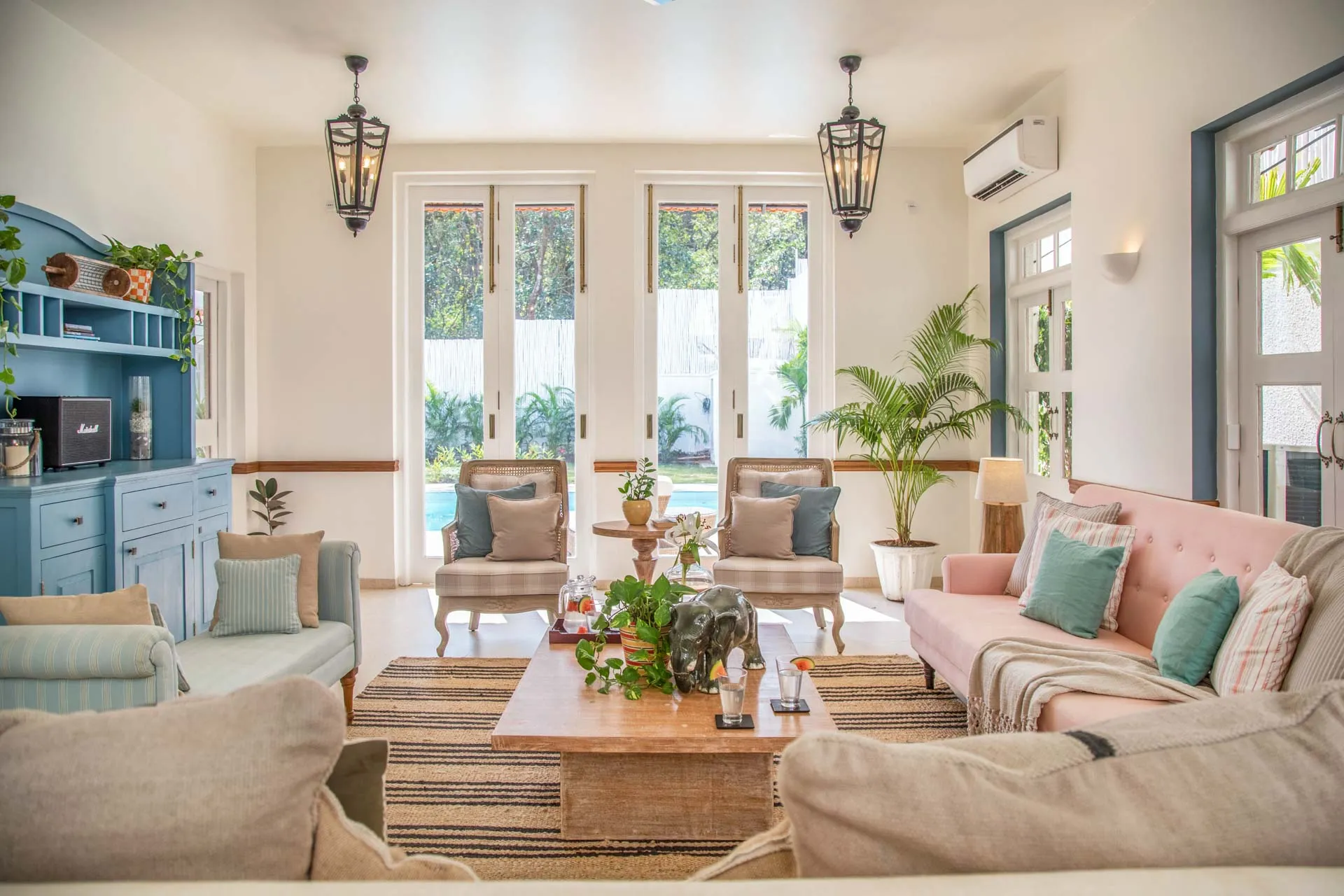 Sweeping arches, full-length windows and double-heighted spaces coupled with pastel-coloured furnishings strike the perfect balance between palatial beauty and comfort at the two-storied Villa D. Hints of Mediterranean and Portuguese design styles are visible through the 4 ensuite bedrooms as well as the charming living area which opens out to a private pool and gazebo. Cook up a storm in the fully equipped kitchen or order-in from the many trendy restaurants in the area and enjoy an al fresco meal on the cosy terrace.